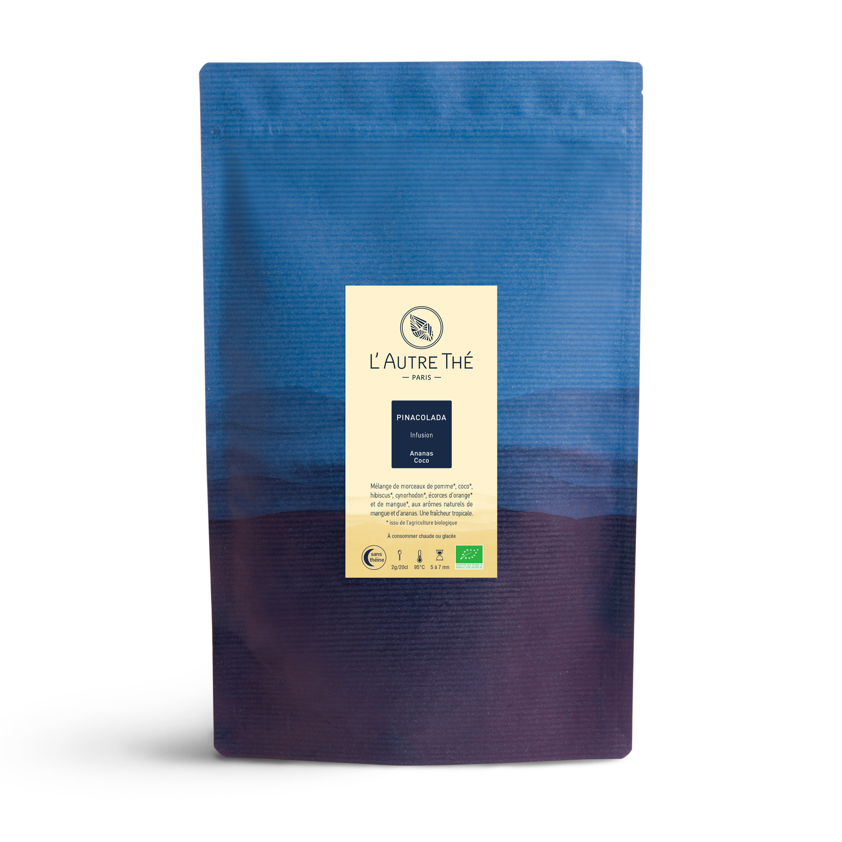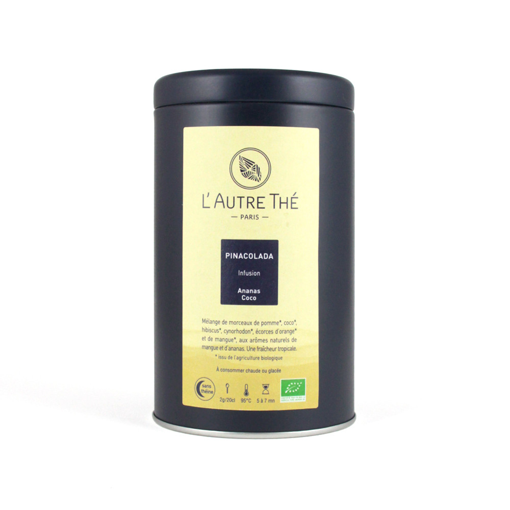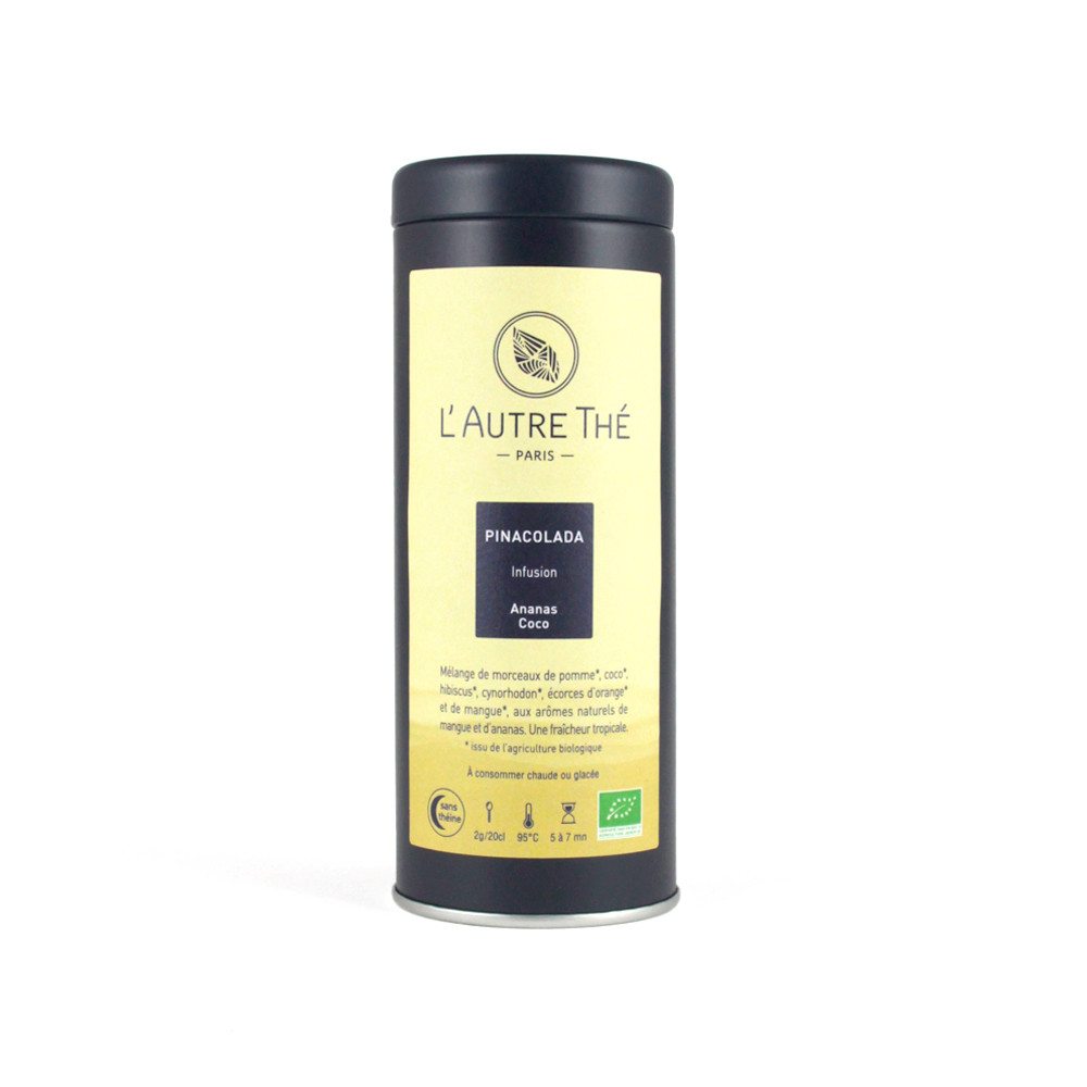 Cette infusion Bio "Pinacolada" est une eau de fruits (c'est-à-dire un mélange de fleurs d'hibiscus, de morceaux de fruits et de pétales de fleurs) à base de morceaux de pommes, de noix de coco, de fleur hibiscus, d'écorces de cynorhodon et de morceaux de mangue.