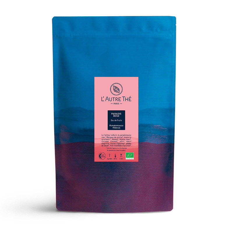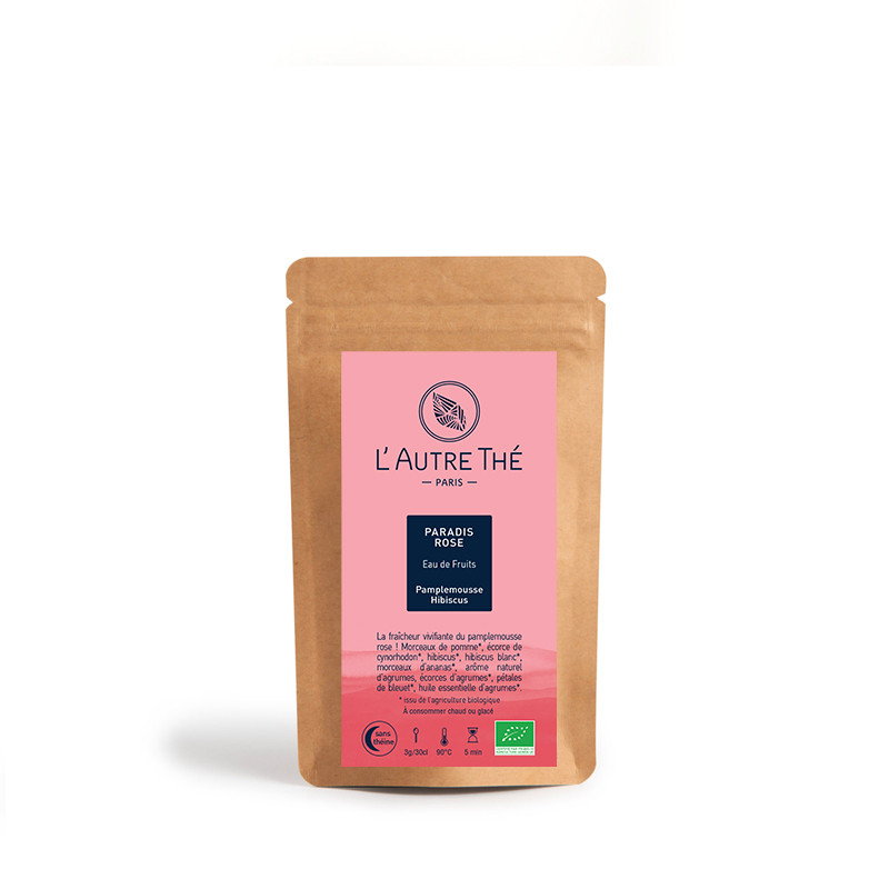 Cette infusion bio est une eau de fruits à l'arôme naturel de pamplemousse rose, composée de morceaux de pommes, d'écorces d'églantier et d'agrumes, d'hibiscus, de morceaux d'ananas. Elle est parsemée de fleurs de bleuet .