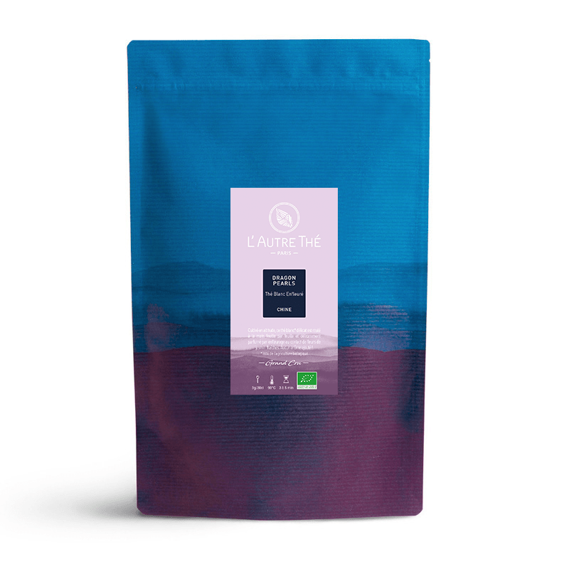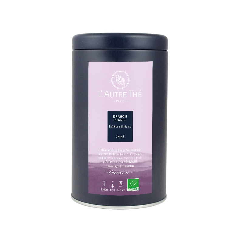 Thé blanc* roulé à la main parfumé au jasmin*. *Issu de l'Agriculture biologiqueDescription