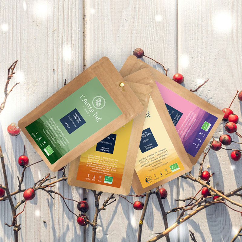 Retrouvez chaque mois une sélection de références en format découverte. Ce mois-ci, on célèbre la nouvelle année qui commence, en vous adressant, sous forme d'une sélection de 3 thés et 1 tisane bio, nos vœux pour 2025 !