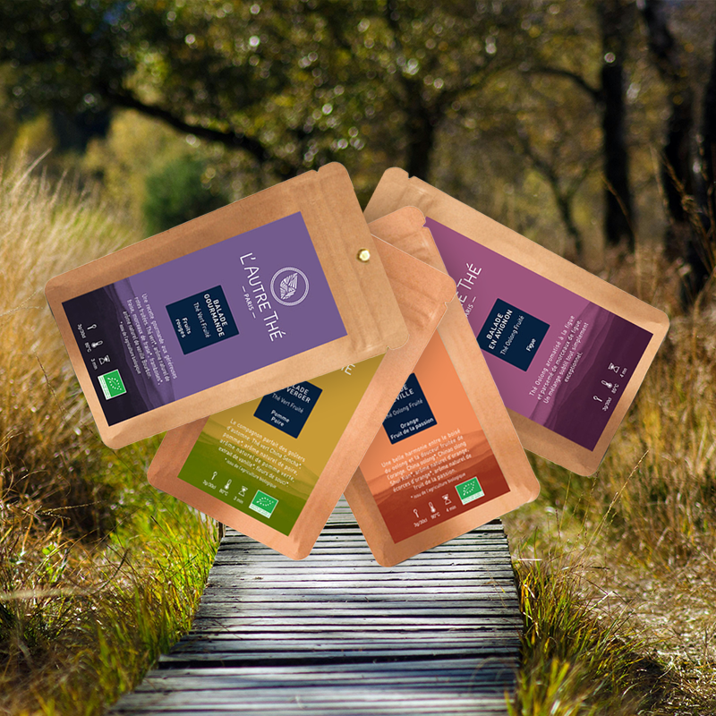- 10g de "Balade au verger" bio : Ce délicieux thé vert est parfumé à la poire et à la pomme, avec une pointe de vanille. Des notes fruitées qui changent !