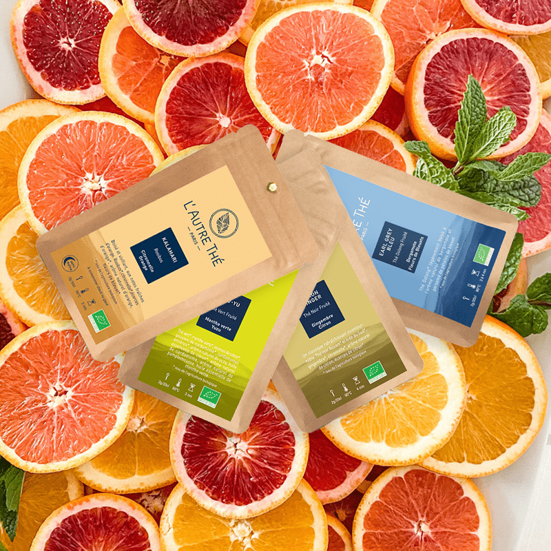 - 10g de "Yuzu-yu" bio : La fraîcheur tonique du yuzu, petit agrume venu du Japon, sur une base de thé vert.