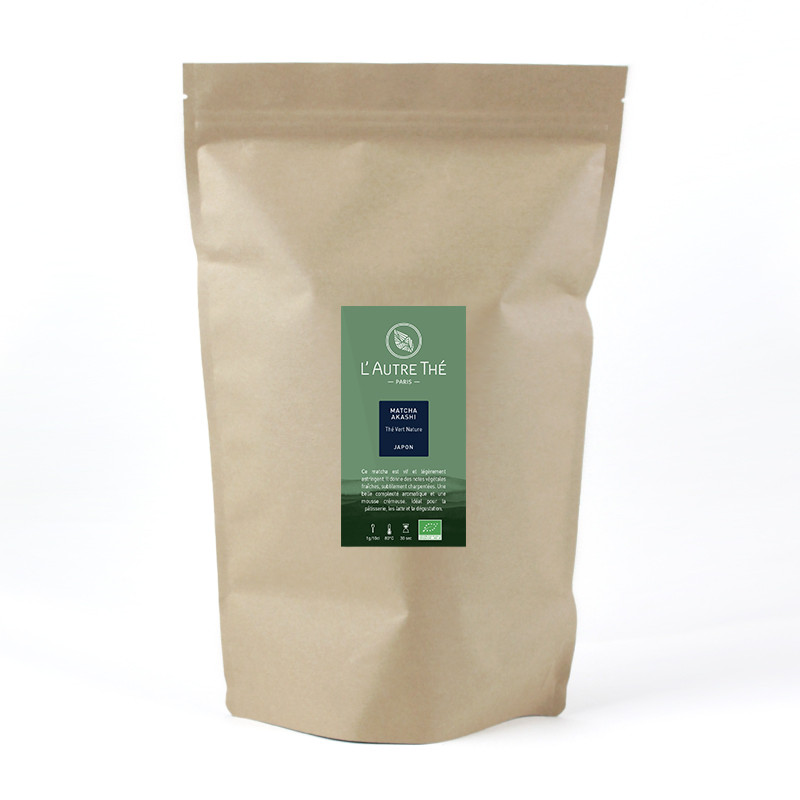 NOUVEAU : rechargez votre boîte avec notre nouveau format "recharge". Un sachet hermétique de 50g de matcha Akashi avec un tarif au gramme avantageux (0,4€ le gramme dans la recharge contre 0,6€ le gramme dans la boîte de 30g) qui tient dans nos boîtes 30g. Parfait si vous êtes un consommateur régulier et pour réutiliser votre boîte dans une démarche zéro-déchet.