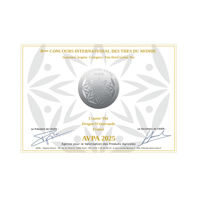 MÉDAILLE D'ARGENT 2025 au 8e Concours International des Thés du Monde AVPA