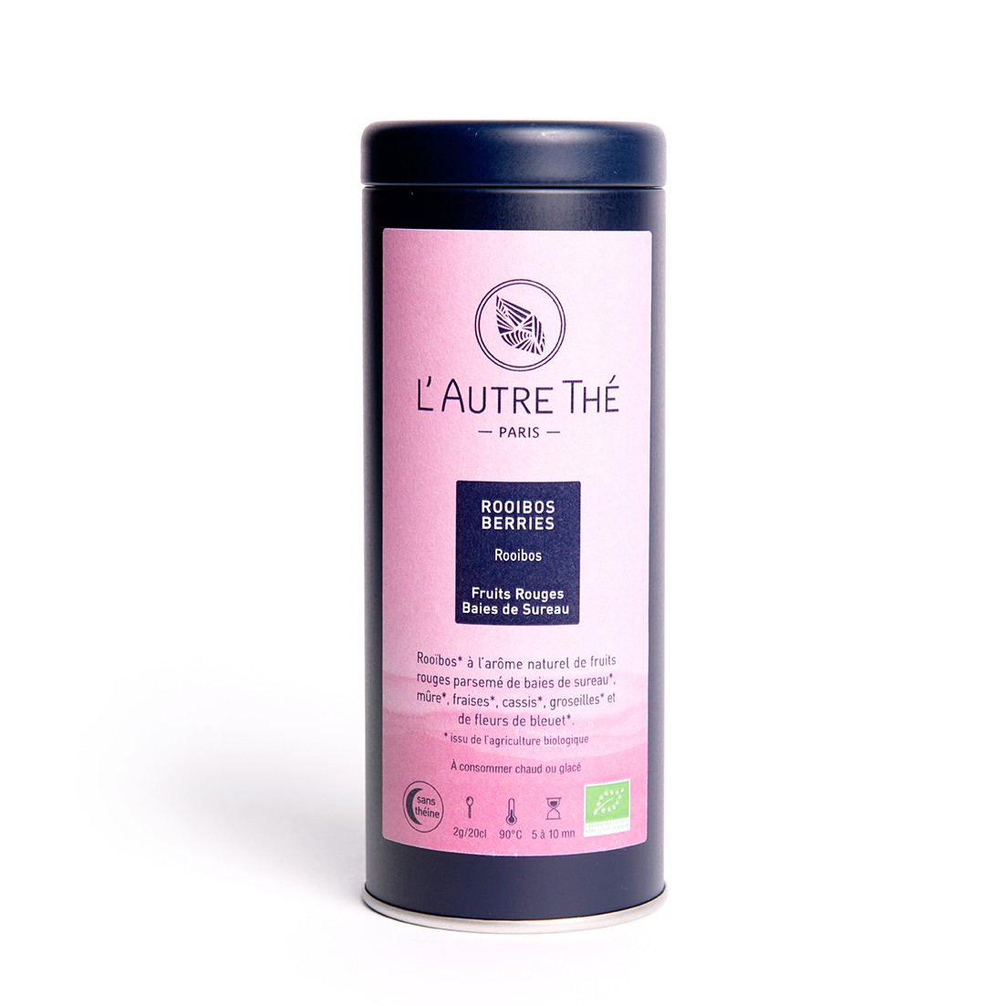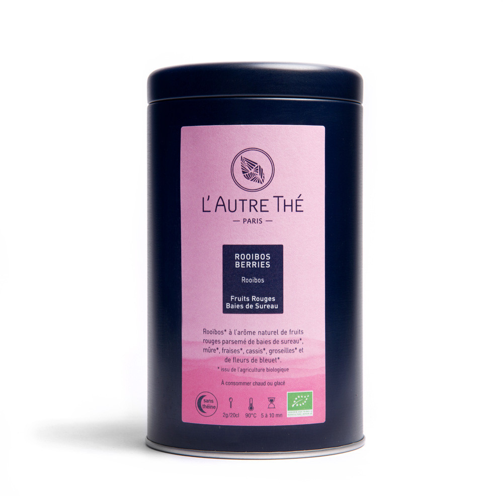 Rooibos*, arôme naturel de fraise, arôme naturel de cassis, baie de sureau*, mûre*, cassis*, groseille*, fleurs de bleuet*. *Issu de l’agriculture biologiqueDescription