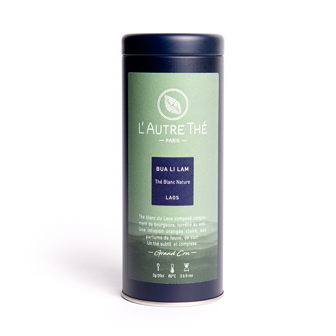 Ce thé blanc du Laos est exceptionnel. Composé uniquement de bourgeons et provenant de théiers semi-sauvage du plateau des Boloven au Laos, il est cultivé et cueilli à la main par Mme Bua Li Lam qui a donné son nom à ce thé exclusif. 100% organique par nature, il est composé uniquement de bourgeons. Il est ensuite torréfié sur un immense wok chauffé au feu de bois.