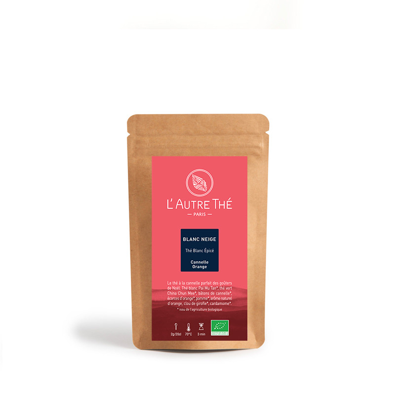 Ce thé blanc de Noël bio présente un accord subtil d'orange, de cannelle et de cardamome. Composé du bourgeon terminal et de deux jeunes pousses, il est cueilli à la main uniquement au printemps dans la province de Fudjian en Chine dans une coopérative certifiée agriculture biologique.