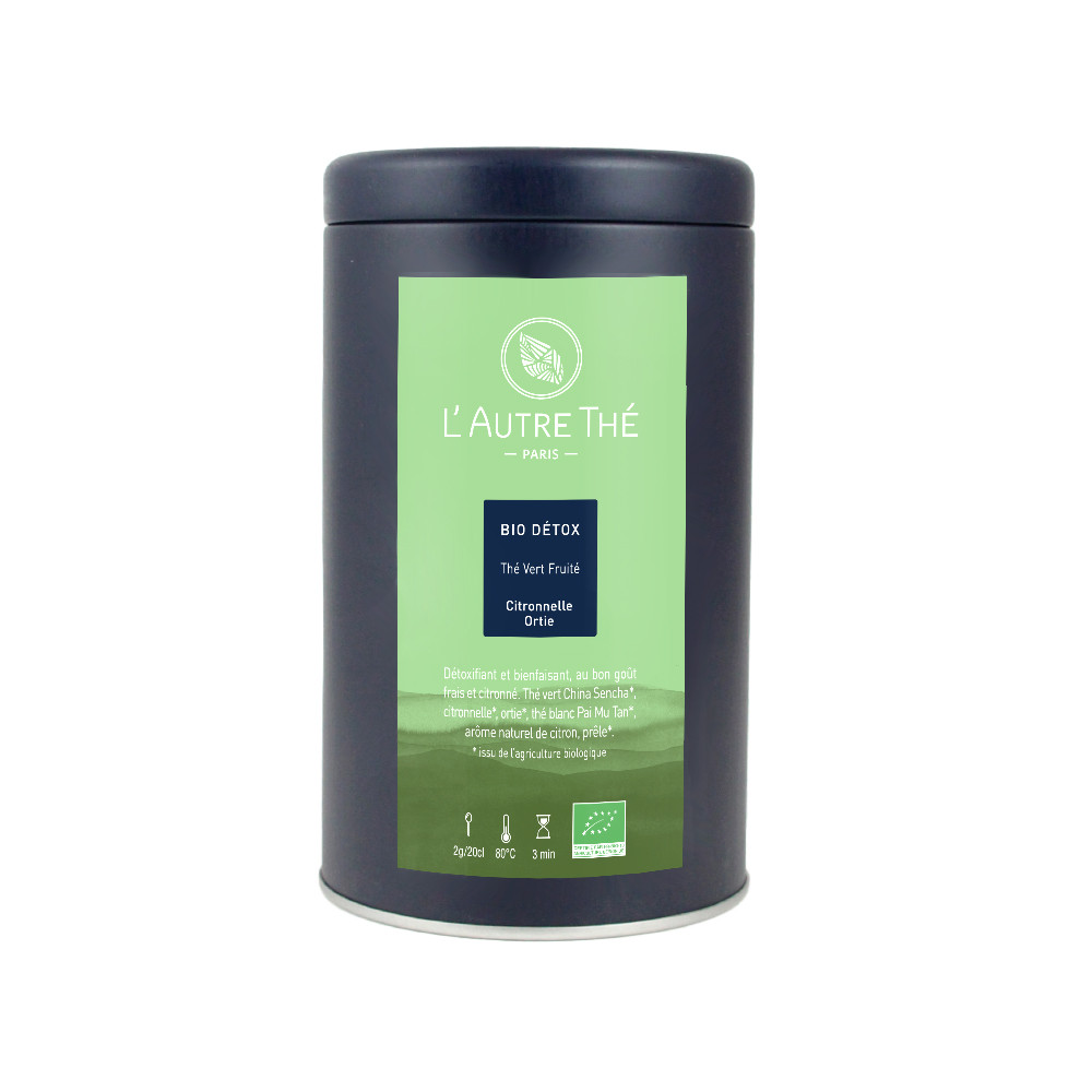 Ses ingrédients sont connus pour leurs propriétés drainantes protectrices et purifiantes : thé vert et thé blanc antioxydants, prêle reminéralisante, ortie dépurative et citronnelle stimulante du système digestif. Boire le thé bio Detox à jeun au réveil vous aidera à éliminer les toxines.