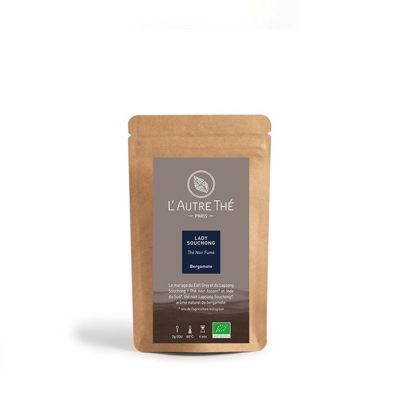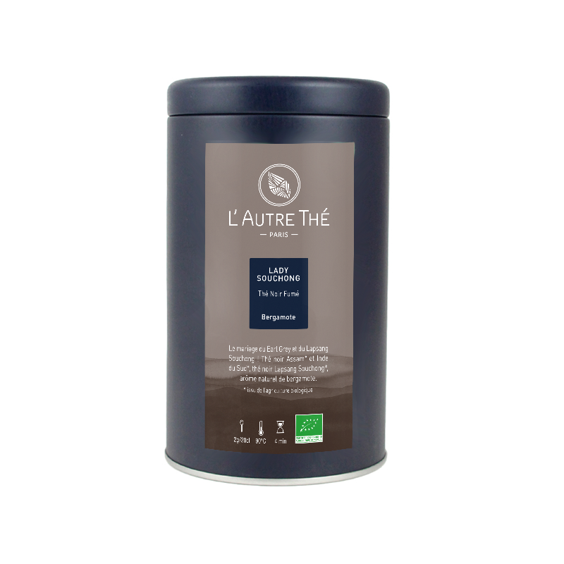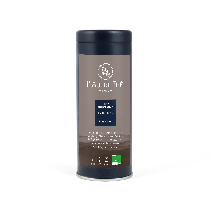 Thé noir Assam* et Inde du Sud*, thé noir Lapsang Souchong*, arôme naturel de bergamote. *Issu de l‘agriculture biologiqueDescription