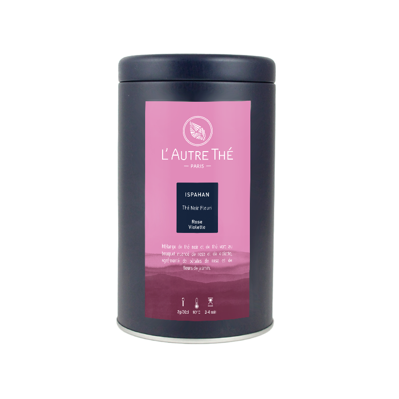 Le thé Ispahan est un mélange étonnant de thé noir et de thé vert de Chine au bouquet floral de rose et de violette. Il est agrémenté de fleurs de jasmin et de pétales de rose.