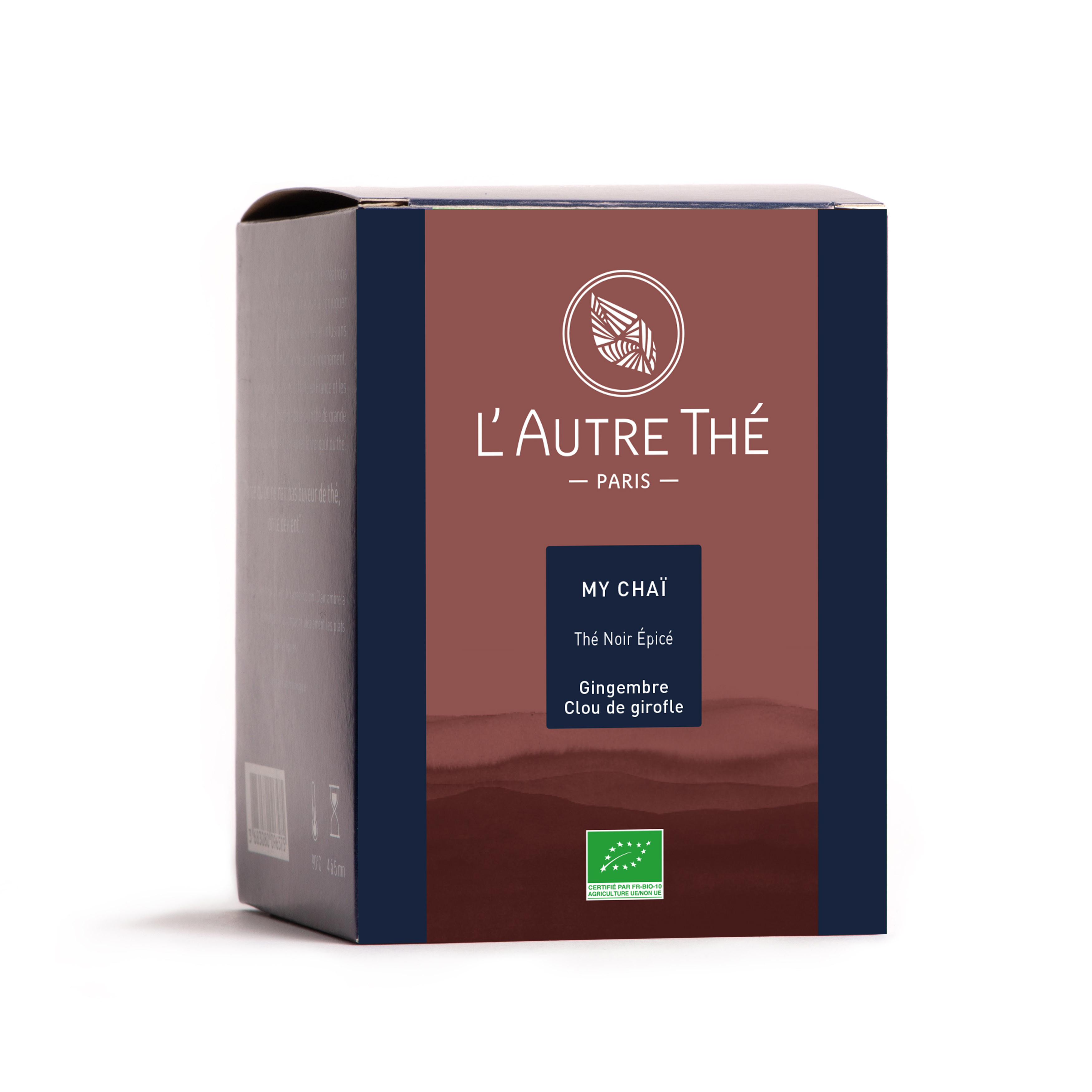 Thé noir d'Inde bio est accompagnés des épices qui font la renommée du thé chaï : cannelle, gingembre, fenouil, cardamome, clous de girofle, réglisse et poivre noir.