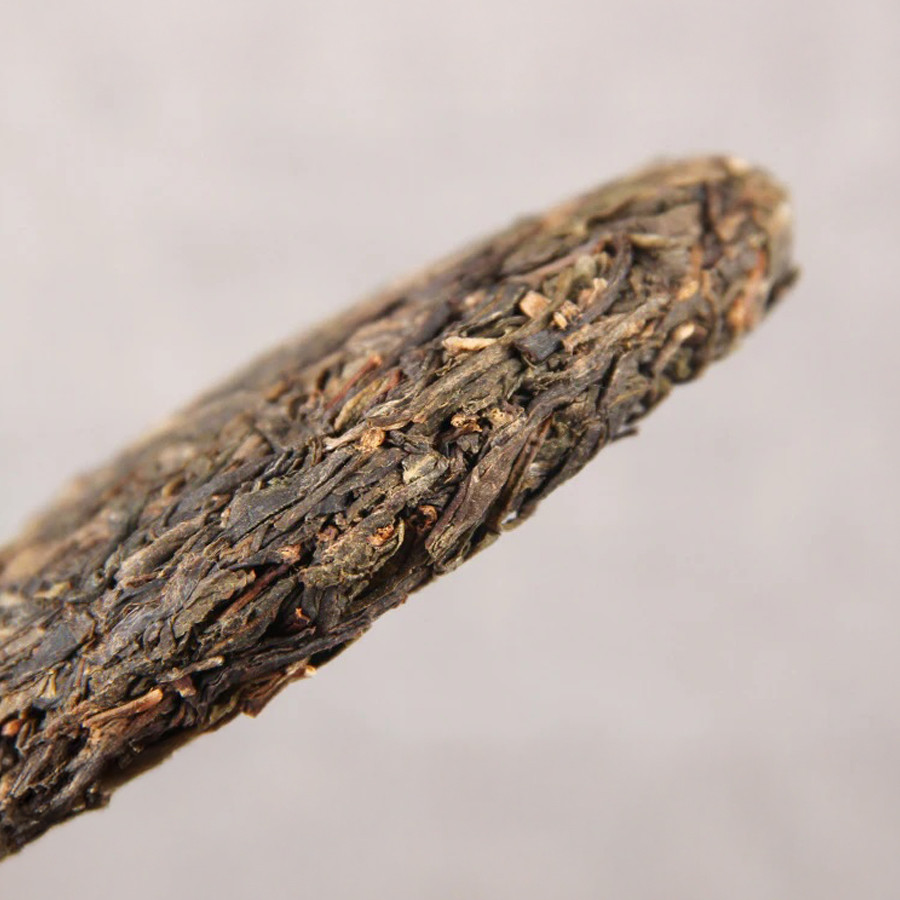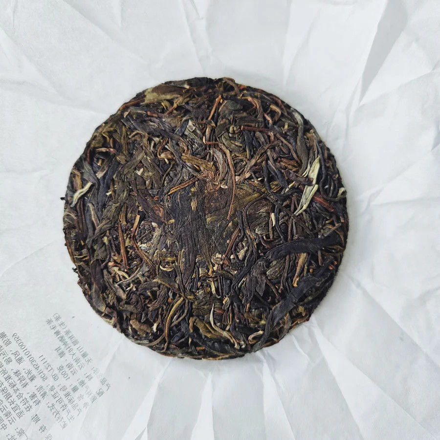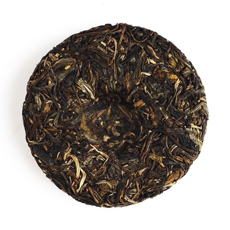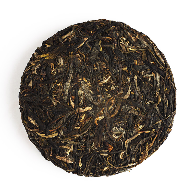 Méthode de fabrication : le pu'er Sheng est fait à partir d'un Maocha (une sorte de thé vert brut, séché au soleil, issu de variétés de théiers à grandes feuilles poussant dans le Yunnan), qui est compressé en galette de 100g et qui continuera de murir et d'évoluer, fermentant naturellement petit à petit. Ce thé est récolté sur des arbres sauvages non traités.
