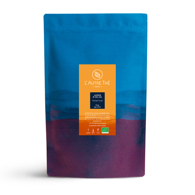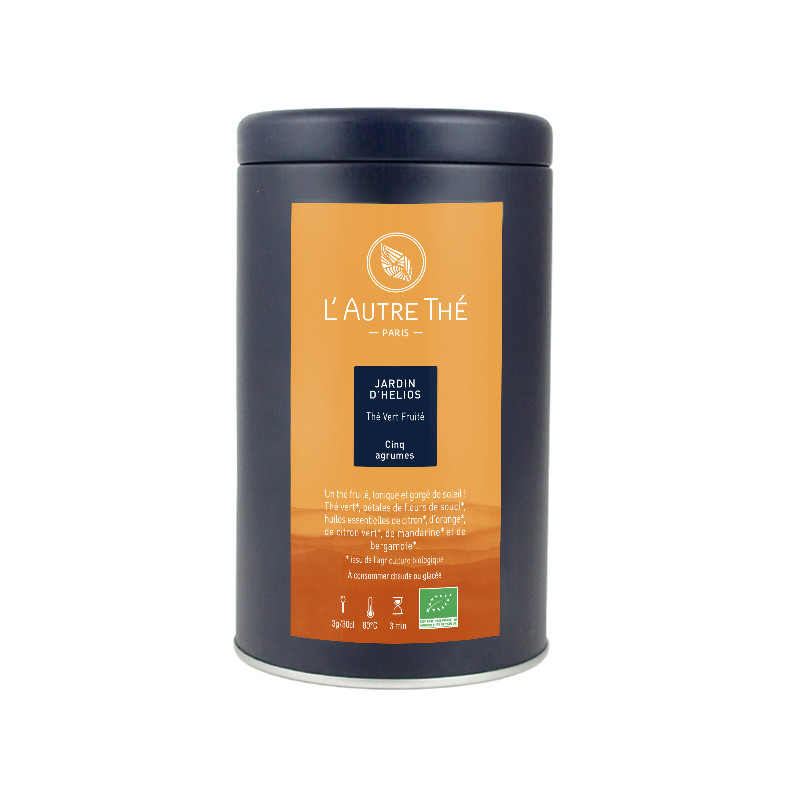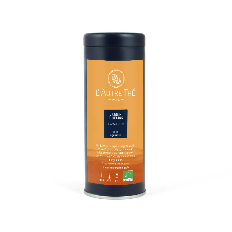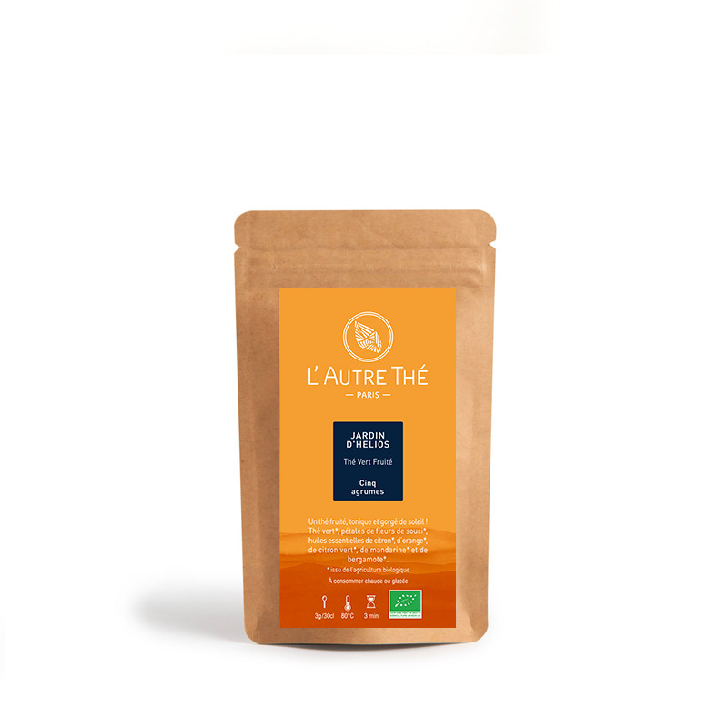 Ce thé Jardin d’Hélios est un thé vert Sencha aux arôme naturels de 5 agrumes (citron, orange, citron vert, mandarine, bergamote). Il est parsemé de pétales de fleurs de souci