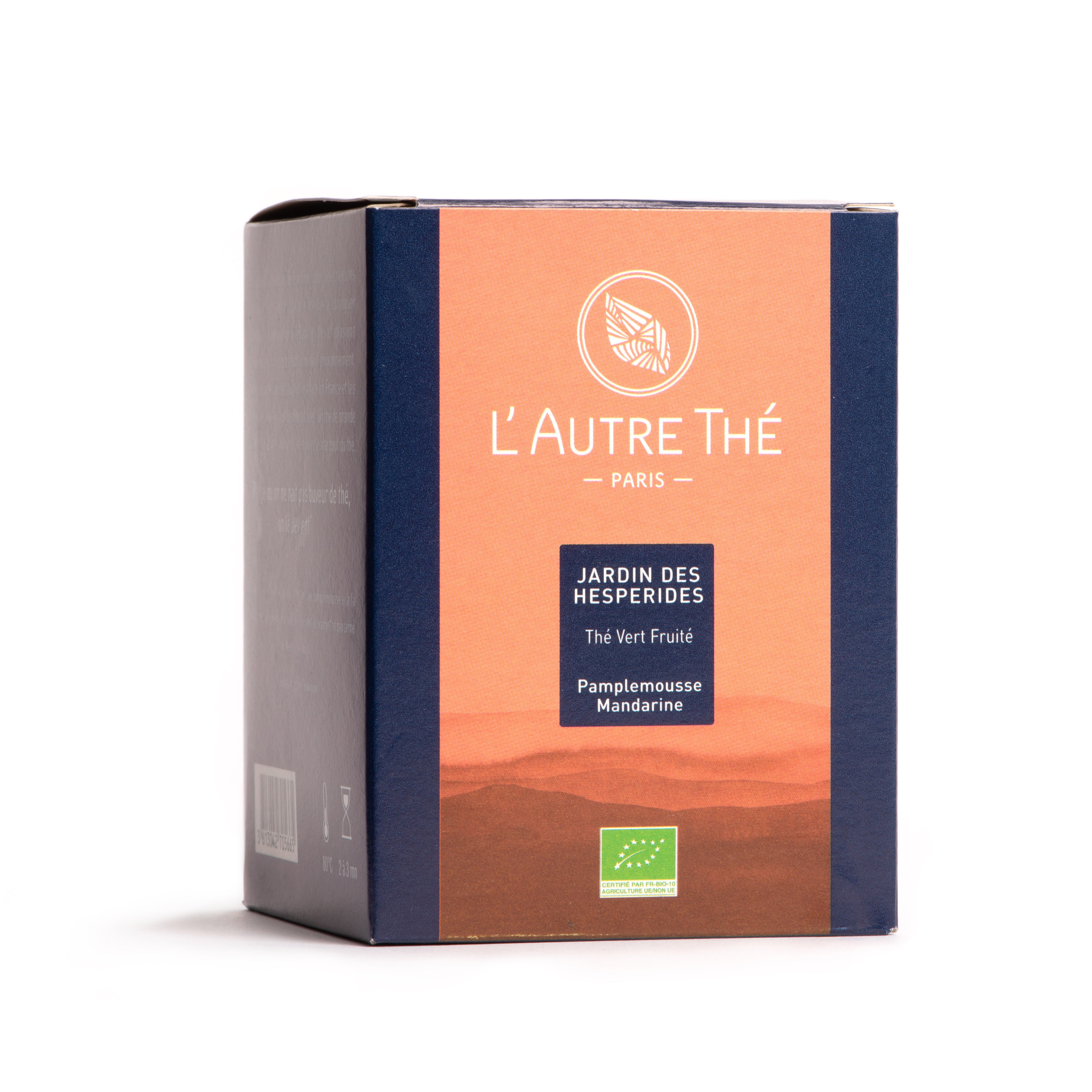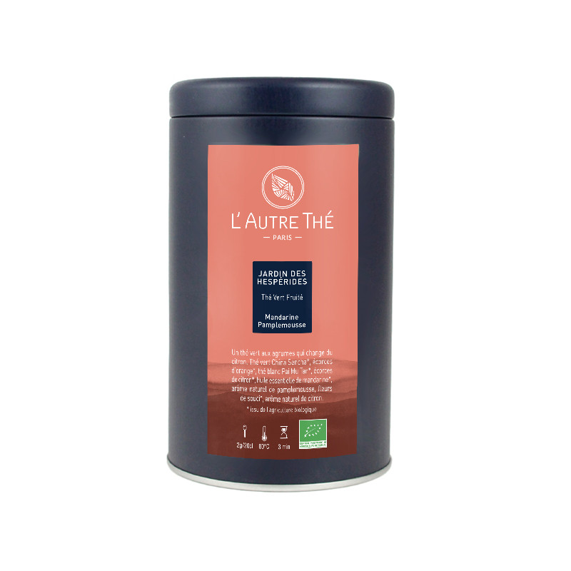 "Jardin des Hespérides" est un mélange de thé vert Sencha et de thé blanc Paï Mu Tan aux arômes naturels de pamplemousse et de mandarine. Il est agrémenté d'écorces de citron, d'orange et de fleurs de soucis.