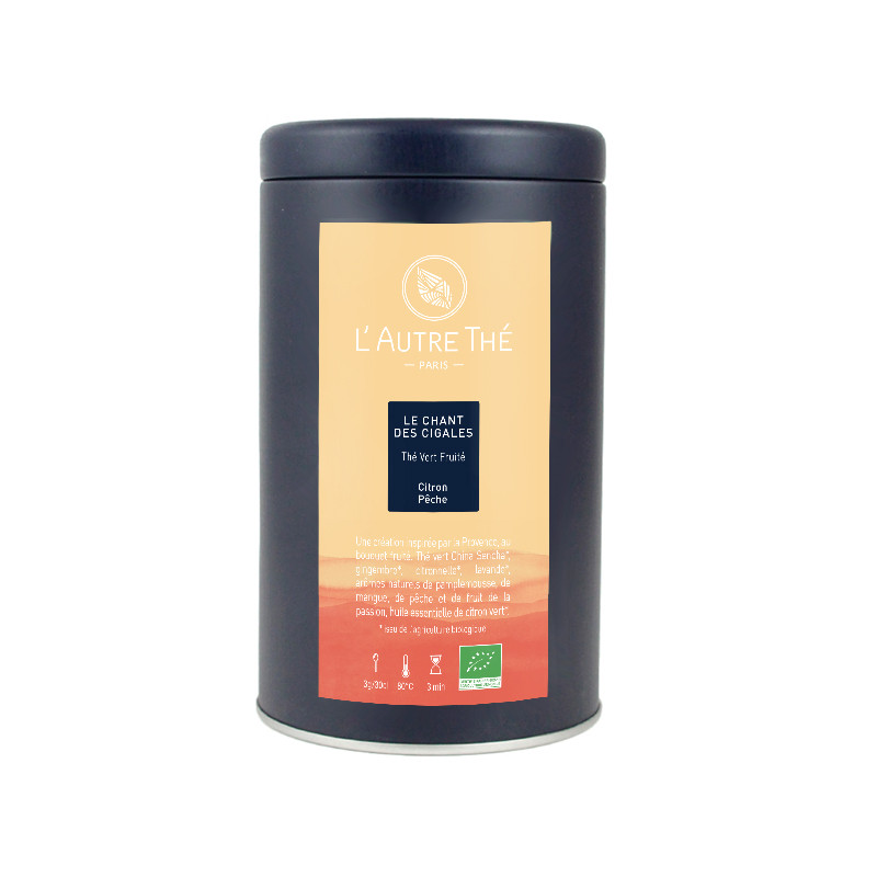 Ce thé "Le Chant des Cigales" (anciennement "Noël des Cigales") est un thé vert de Chine aux arômes de pamplemousse, mangue, pêche et fruit de la passion. Agrémenté de fleurs de lavande, de gingembre et de citronnelle, il est relevé par une pointe de citron vert.