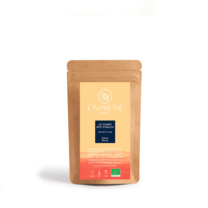 Anciennement "Noël des Cigales" Thé vert bio pamplemousse, mangue, pêche