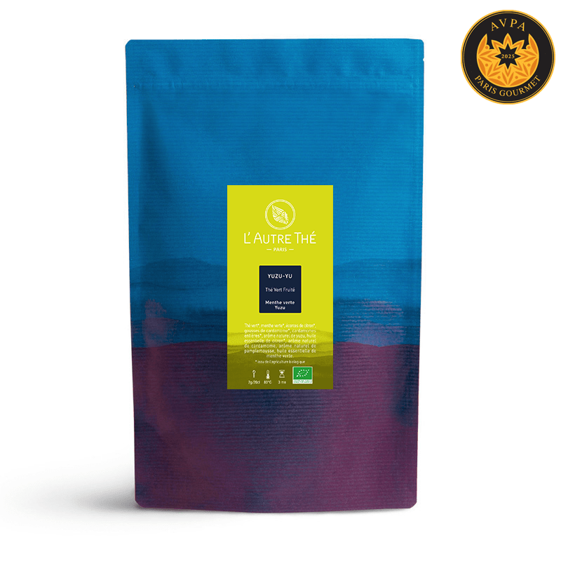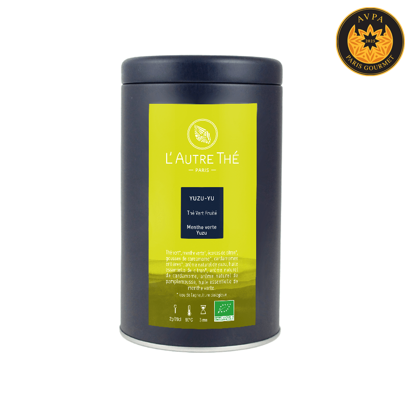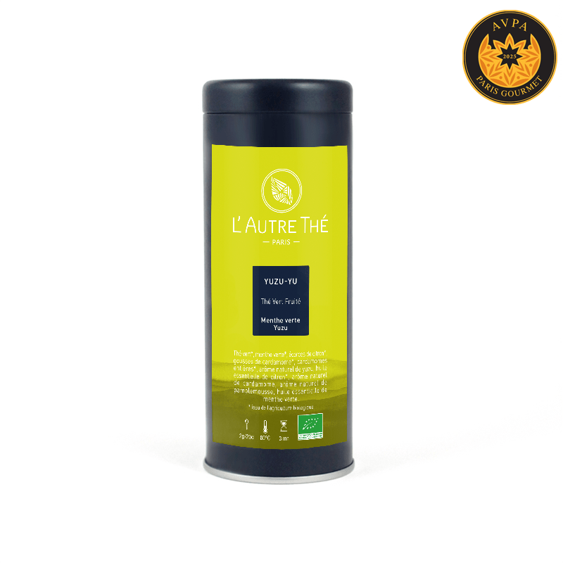 Ce Yuzu Yu est un thé vert bio à l'arôme naturel de Yuzu, un agrume asiatique, et de menthe verte twisté d'un soupçon de cardamome. Il est parsemé d'écorces d'orange, de graines de cardamome et de cardamomes entières.