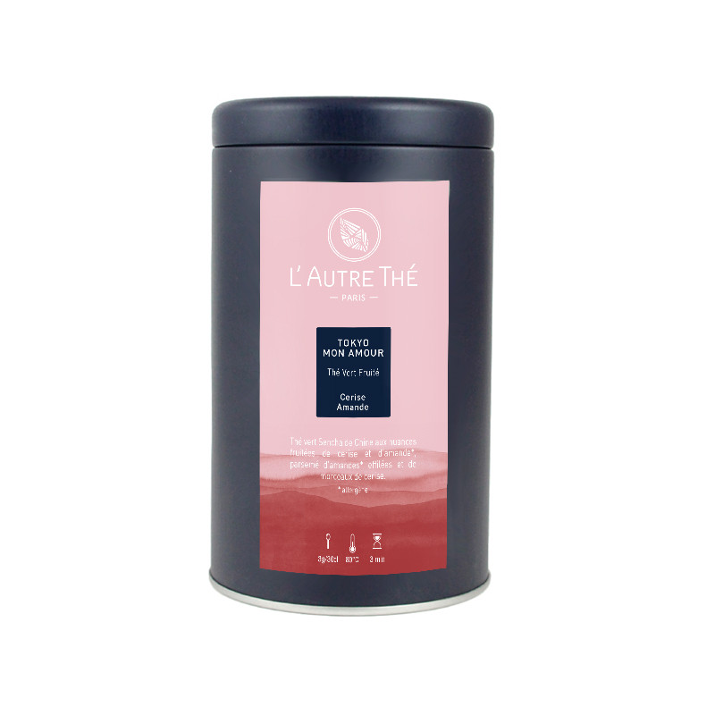 Ce thé "Tokyo Mon Amour" (anciennement "Noël à Tokyo") est un thé vert de Chine aux arômes de cerise et d'amande grillée parsemé de petits morceaux d'amandes effilées.