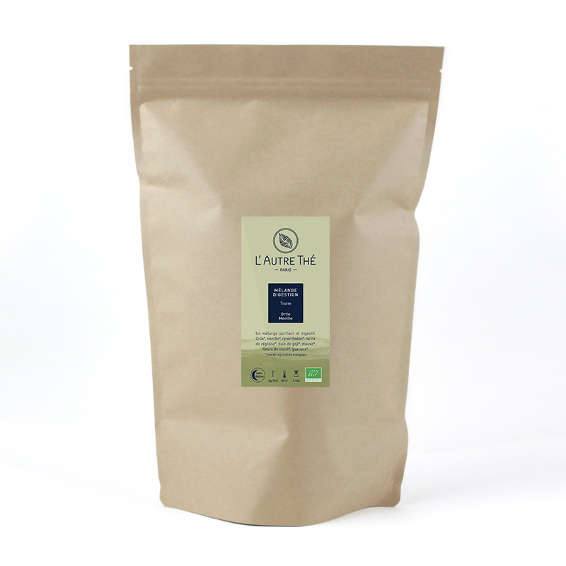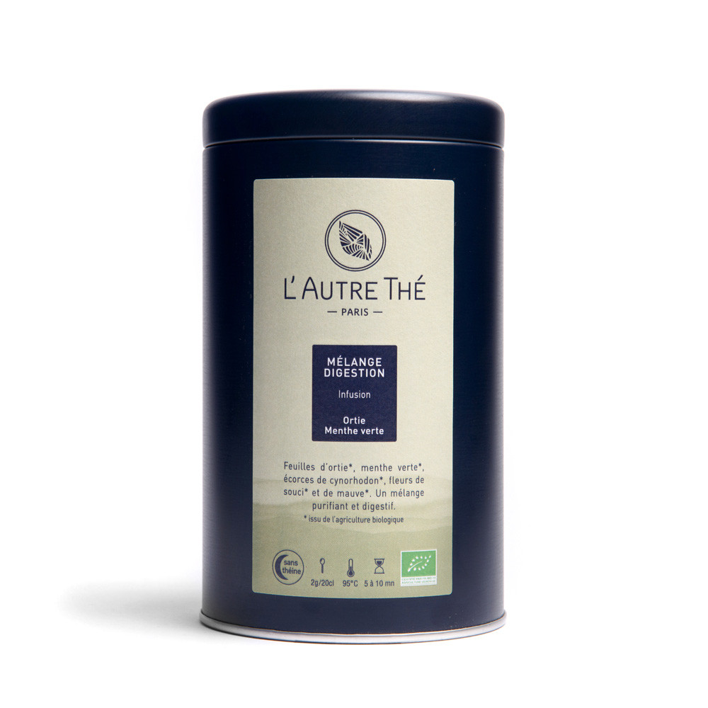 Cette tisane digestive biologique est un mélange de feuilles de menthe verte, de feuilles d'ortie, d'écorce de cynorhodon et de réglisse, de baies de goji agrémenté de feuilles de souci et de mauve. Ces ingrédients sont connus pour aider à éliminer les toxines et faciliter la digestion : menthe et réglisse digestives, ortie dépurative. Son goût est très équilibré, délicieux en infusion à froid.