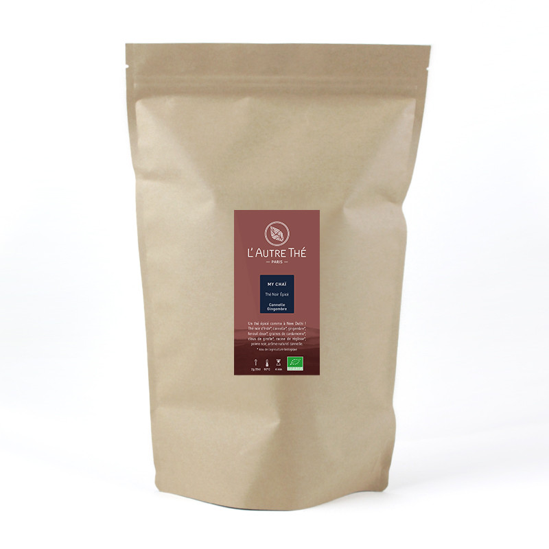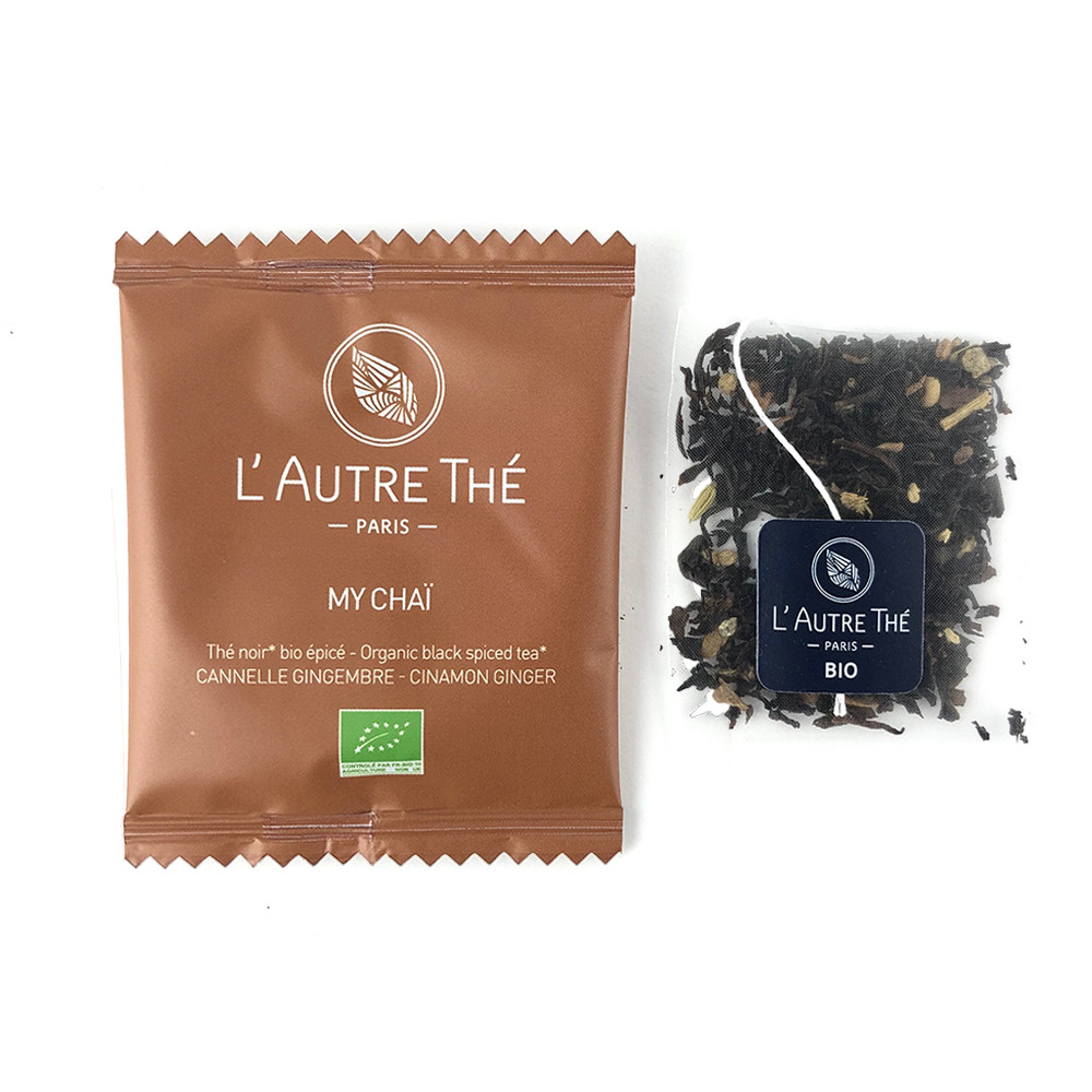 Organic black tea is accompanied by spices that are famous for chaï tea: cinnamon, ginger, fennel, cardamom, cloves, liquorice and black pepper.