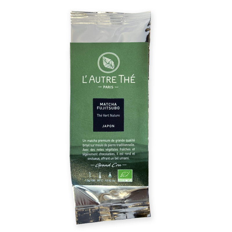 This premium Fujitsubo Matcha has fresh, slightly chocolatey vegetal notes, with little astringency. Its roundness, creaminess, and sweetness give it a light and delicious foam with a very pronounced umami flavor, a sign of quality.