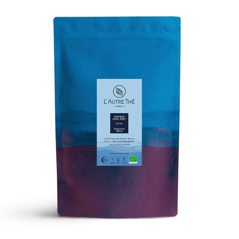 The organic southafrican rooïbos is flavored with natural bergamot aroma and sprinkled with blue cornflower.
