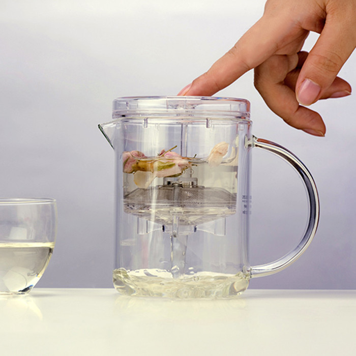 This small teapot is made from lightweight, impact-resistant and heat-resistant borosilicate glass, and features a removable integrated infuser. Perfect for brewing loose-leaf teas or infusions, which will have all the room they need to express their flavors, this ingenious system separates the leaves from the liquor at the touch of a button on the lid. So you can enjoy perfectly brewed tea and reuse the leaves already in place for subsequent infusions. Battery-free operation.